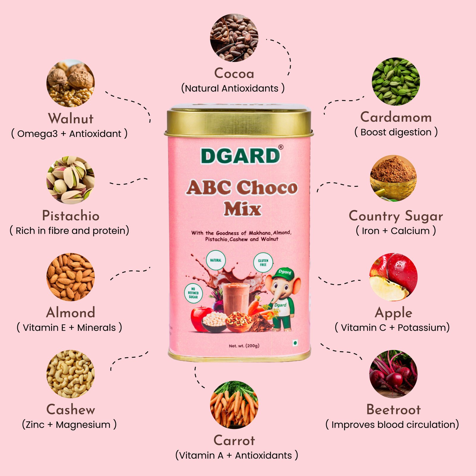 Who knew fruits, veggies, and chocolate could get along this well? Dgard’s ABC Choco Mix combines the natural goodness of apple, beetroot, and carrot with the comfort of cocoa and the richness of nuts. For kids, it’s chocolate milk with a secret stash of nutrition. For you, it’s a smart way to add fruits and veggies to your family’s routine without the fuss.Â
