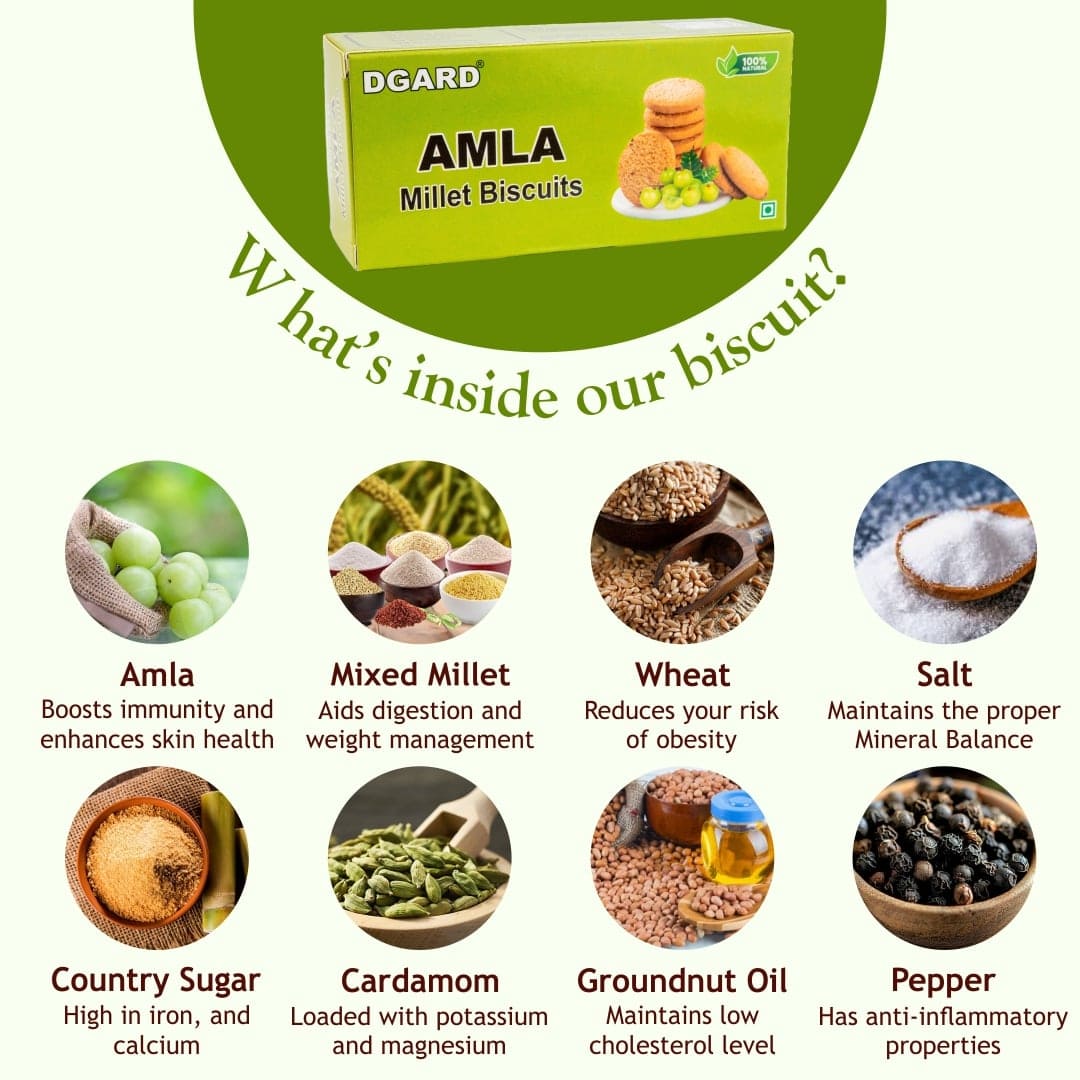 Ingredients: Amla, Mixed millet, Wheat, Country sugar, Salt, Pepper, Cardamom and Groundnut oil