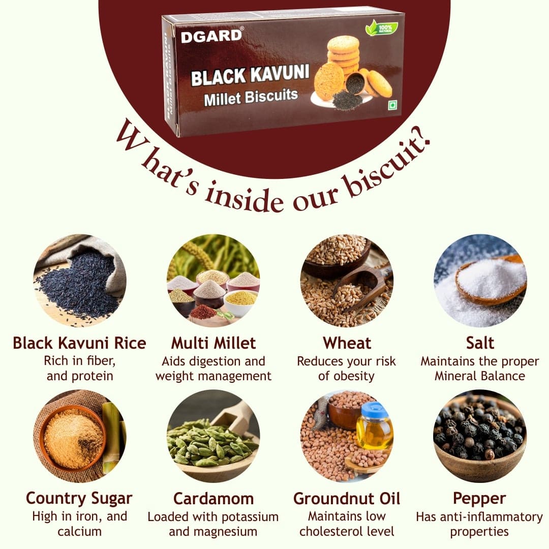 Ingredients: Black kavuni rice, Multi millet, Wheat, Country sugar, Salt, Pepper, Cardamom, and Groundnut oil.