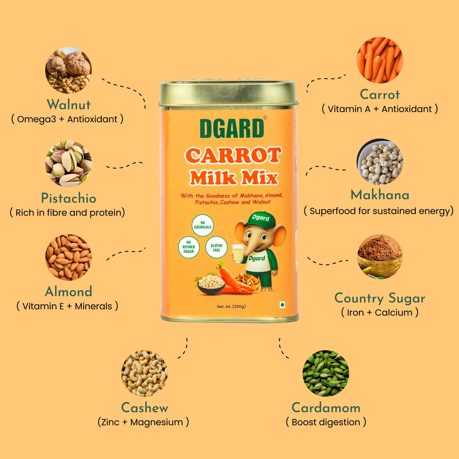 Bright, naturally sweet, and quietly nourishing — Dgard’s Carrot Milk Mix takes the goodness of carrot and turns it into a creamy, cardamom-scented drink that works perfectly for daily use. It’s the kind of drink you can make in under two minutes, but it delivers both taste and nutrition for kids rushing to school, adults between meetings, and anyone who needs a mid-day lift. The nutty smoothness in every sip makes it feel indulgent, even though it’s pure and wholesome.