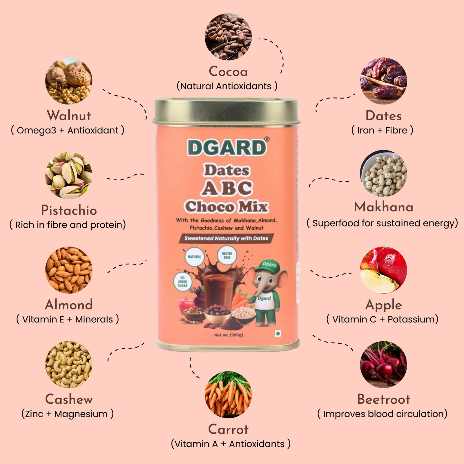 Turn milk-time into excitement with our Dates ABC Choco Mix. A fruity-choco twist your kids won’t stop asking for. This delicious blend brings together the natural sweetness of dates, the colourful nutrition of apple, beetroot, and carrot, and the rich indulgence of pure cocoa to create a flavour that’s both fun and nourishing.Every scoop is powered with cashew, badam, pistachio, walnut, and makhana, giving your child clean energy, good fats, antioxidants, and iron — without any sugar, additives, or artificial flavours.
