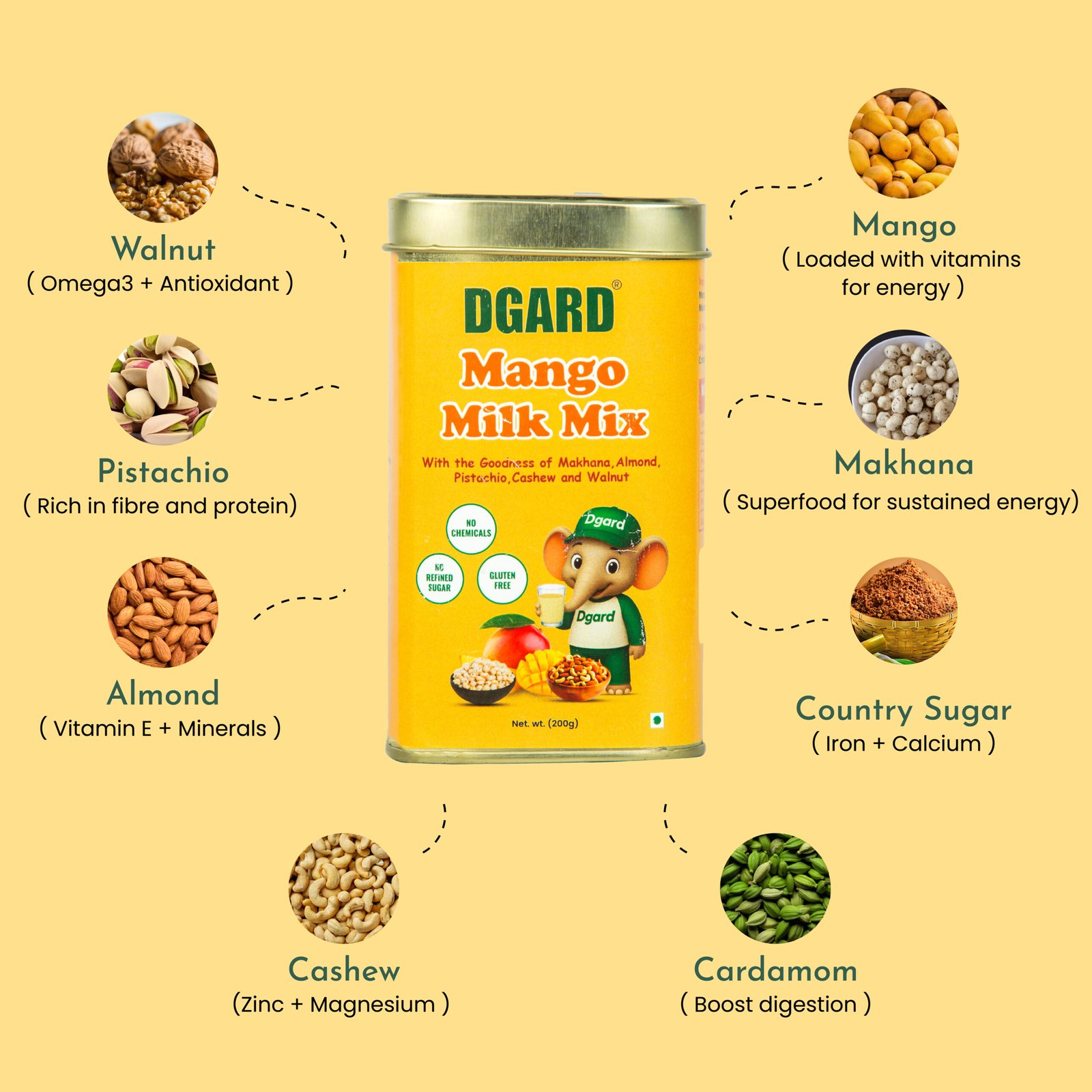 The joy of mango season is now made part of your family’s daily life. Dgard’s Mango Milk Mix blends gentle mango flavour with creamy milk, warm cardamom, and the richness of nuts for a drink that’s as nutritious as it is comforting. It’s designed to be your everyday health drink — quick to make, loved by all ages, and packed with natural goodness.